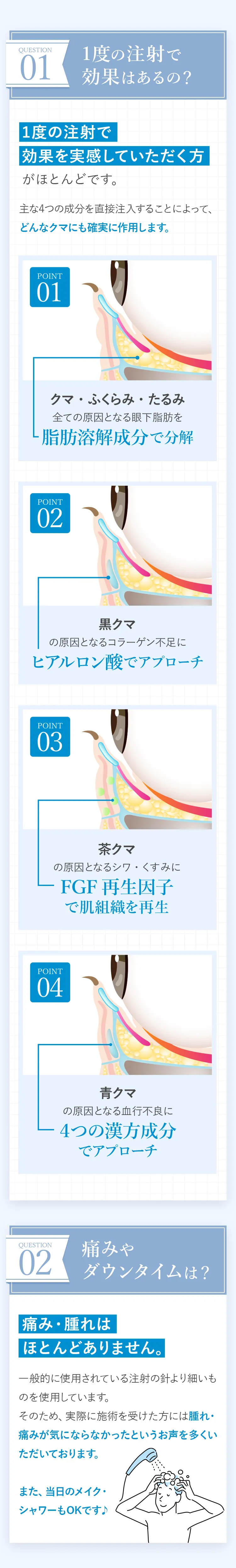 腫れや痛み、内出血はほとんどありませんが、数日程度で自然な状態に落ち着きます。当日よりメイクや洗顔は可能です。