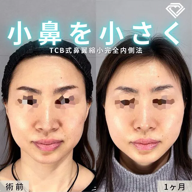 TCBの切らない小鼻縮小は傷口が針穴のみで切らないためダウンタイムはほぼありません。