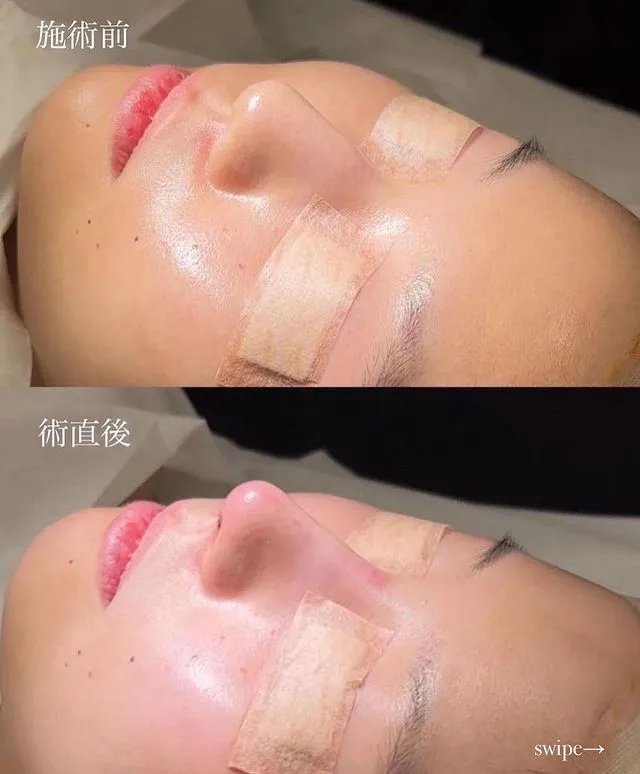 吸収性の素材を鼻先に注射で挿入し、鼻先を細く尖らせる施術です。