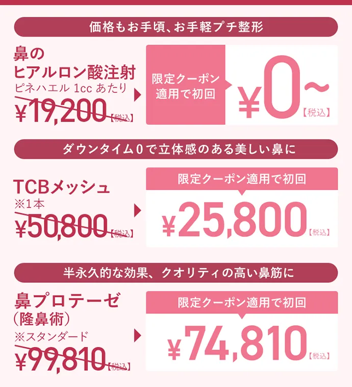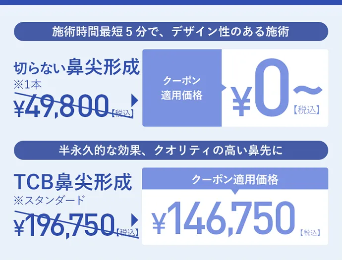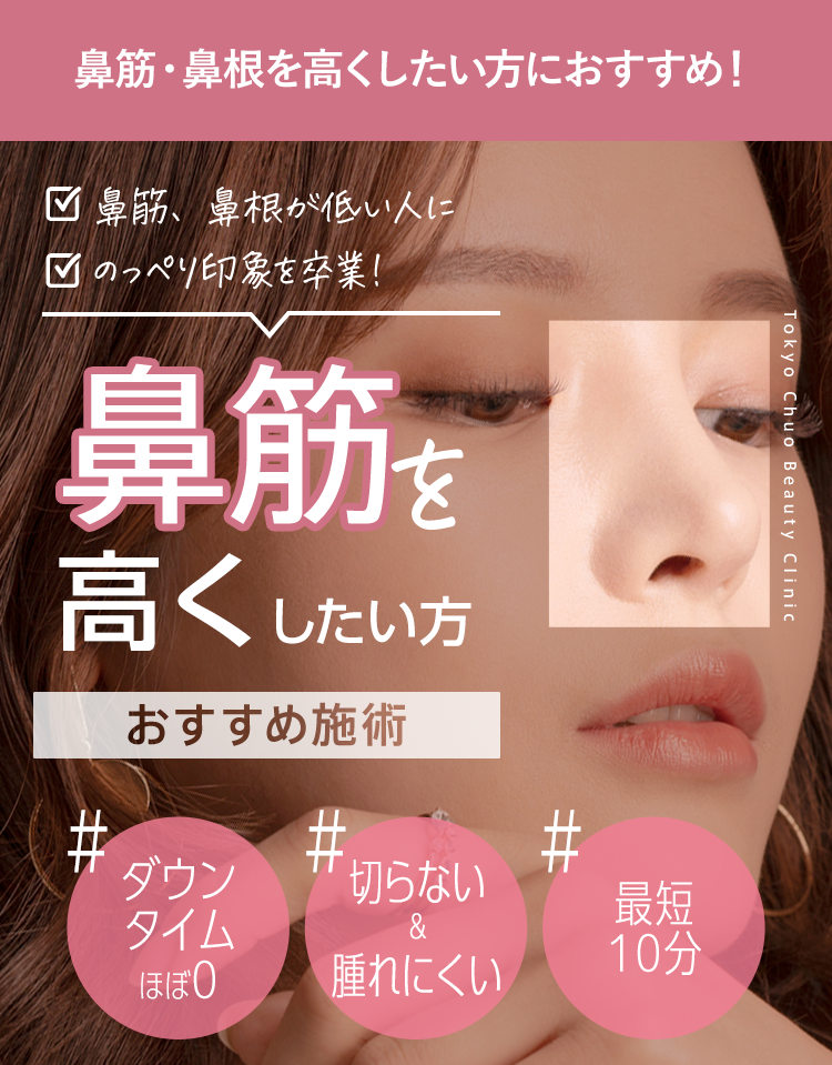 TCBメッシュは、メス不要で高い鼻筋を目指す施術です。切開せずに、少ないリスクで鼻を高くしたい方にオススメの施術です。