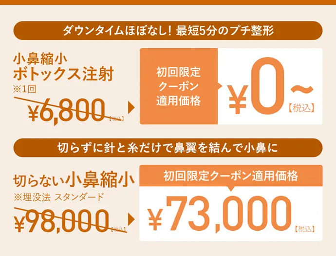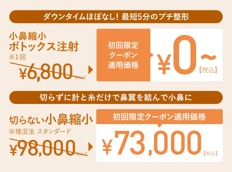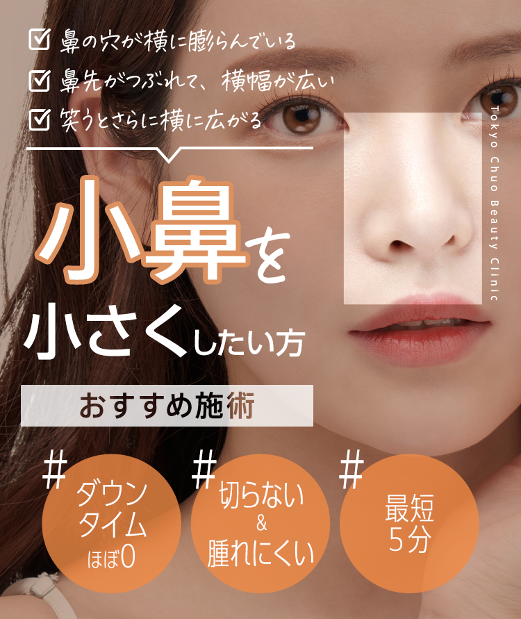ボトックス注射を鼻に打つことで筋肉の働きを抑制し、小鼻の広がりを解消する施術です。
