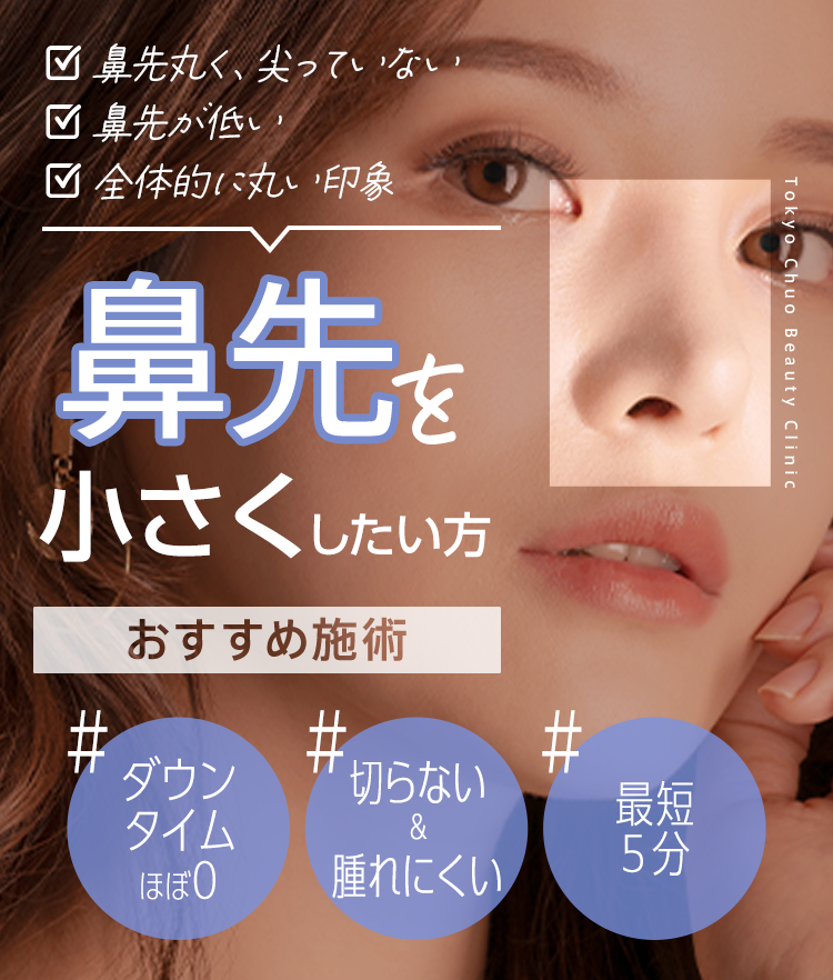 TCB鼻尖形成は針の先端が丸い専用の注射器で血管を傷つけない工夫が施されているため、ダウンタイムはほぼありません。そのままお出かけすることも可能です!