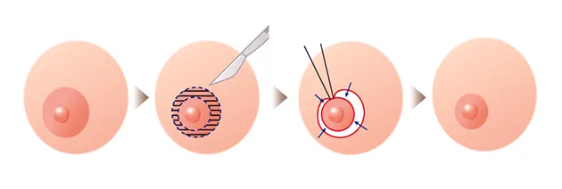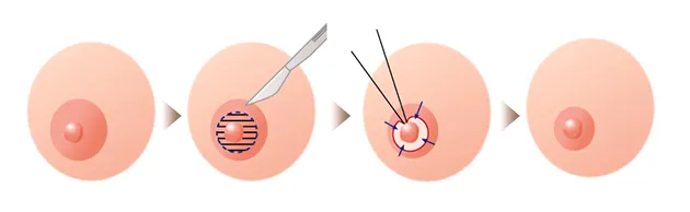 ① 乳首の周りを切って傷跡が目立たなくなる方法