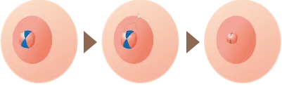 乳管を避けるように、乳頭をケーキのように三角形に切除し、切除部分を縫合しサイズを小さくします。