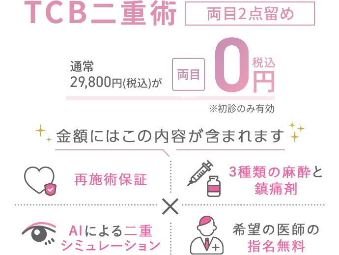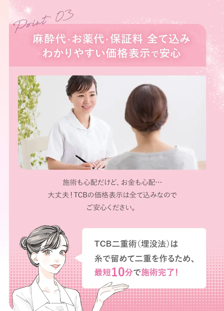TCBでは、施術に必要な代金がすべて含まれた税込みの価格を表示しております。