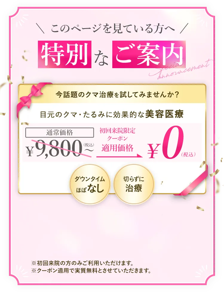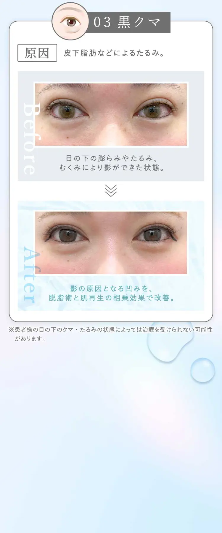 ※患者様の目の下のクマ・たるみの状態によっては治療を受けられない可能性があります。