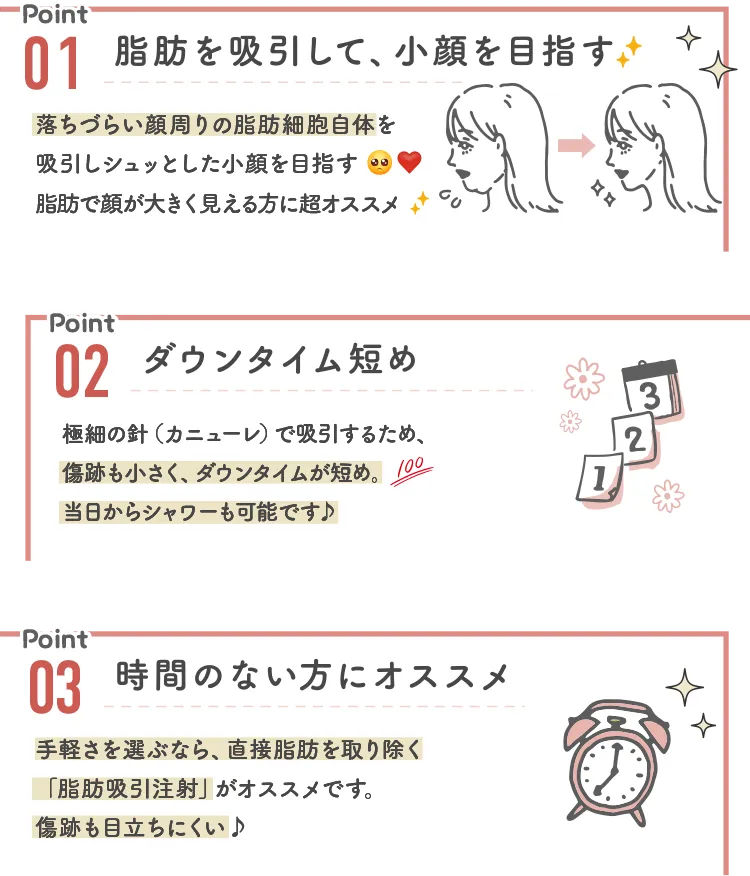 小顔脂肪吸引注射はダウンタイムが短い施術です。