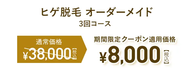ヒゲ脱毛オーダーメイド:1回 28,000円(税込)~ 12回コース 98,000円(税込)